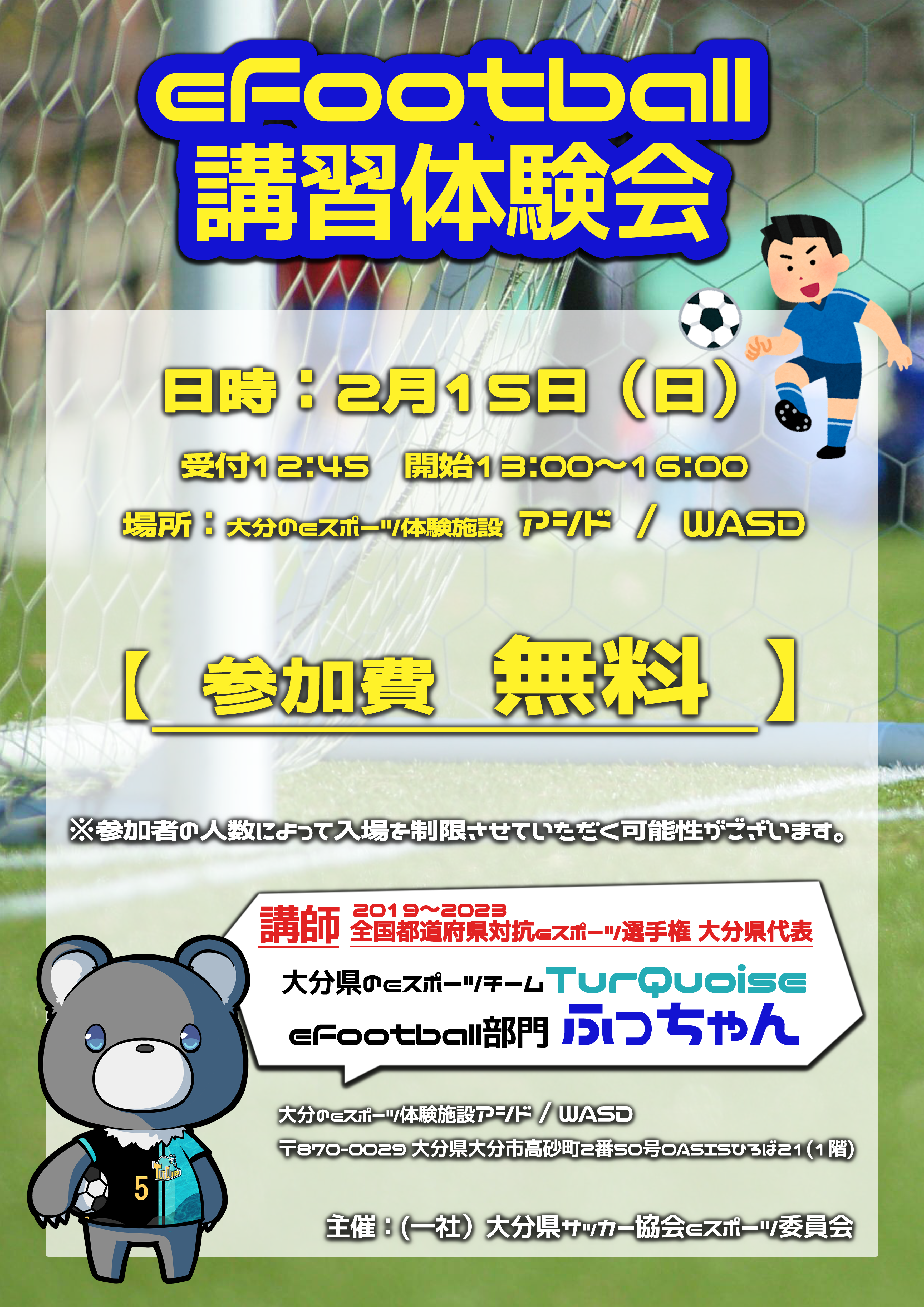 持ち込みイベント2/15(日) eFootball 講習体験会 in WASD(一社)大分県サッカー協会eスポーツ委員会 主催